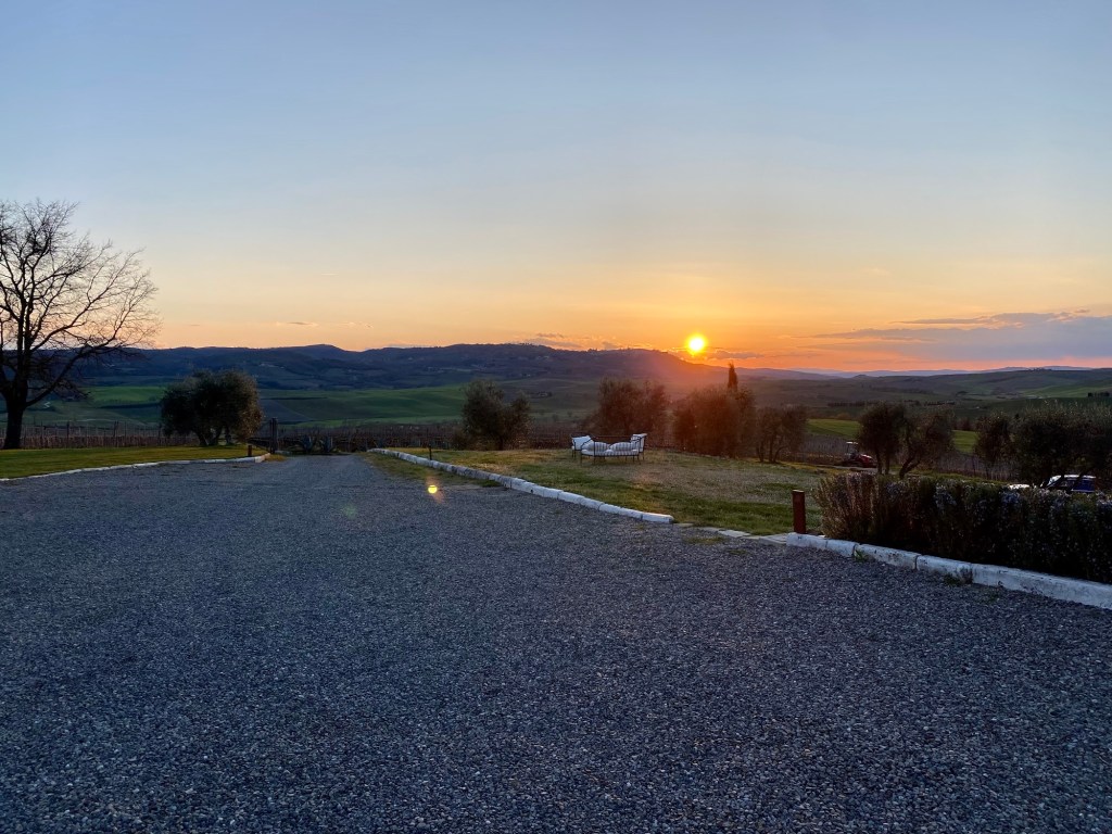 La sera è arrivata con un tramonto che sembrava dipinto a mano. E con essa, una cena semplice ma autentica, fatta di sapori veri: pici al ragù, un bicchiere di rosso della zona e quella sensazione di gratitudine che ti prende quando capisci che, anche se solo per un attimo, sei nel posto giusto, con la persona giusta.